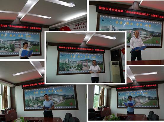 通过此次主题党日活动,大家深刻体会到了“我为疫情防控出把力”的家国情怀和使命担当,党员干部纷纷表示要把学习抗疫精神转化为工作的动力,不忘初心使命,为我校纪检监察工作高质量发展展现新作为、作出新贡献。