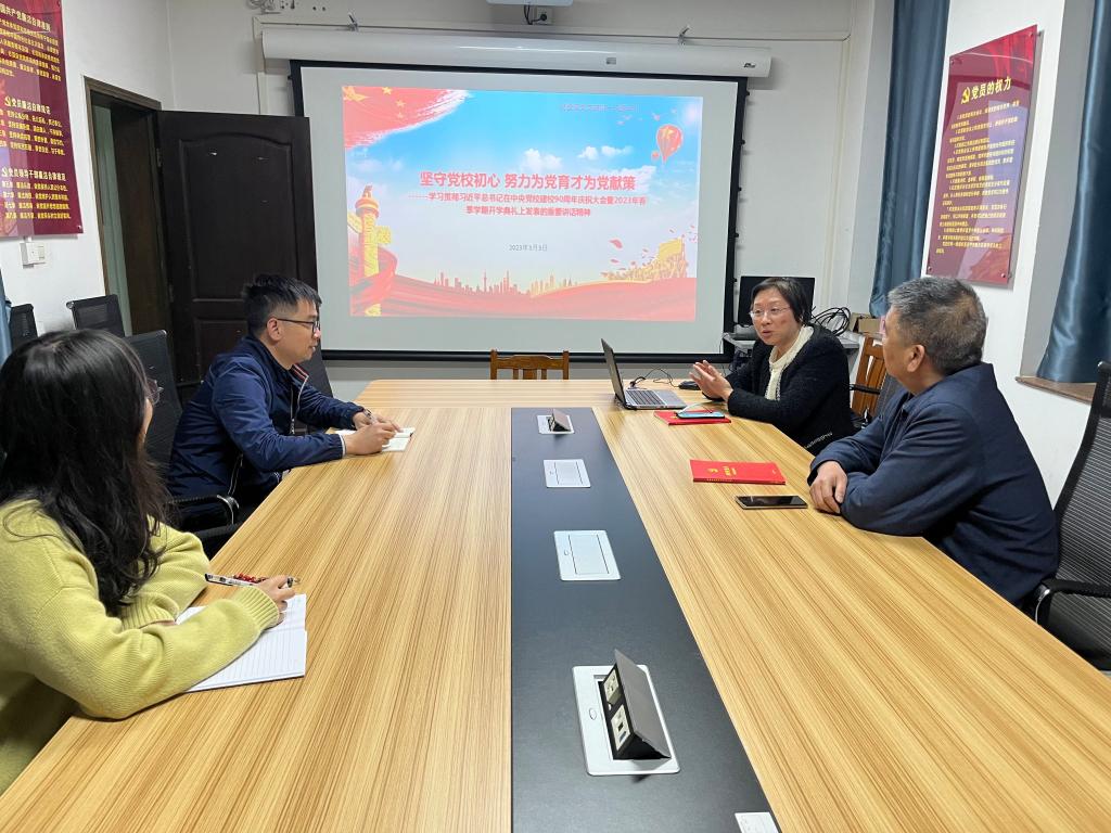2023年3月3日,纪检室党支部召开支部会议,深入学习贯彻习近平总书记在中央党校建校90周年庆祝大会暨2023年春季学期开学典礼上发表的重要讲话精神、习近平总书记在二十届中共中央政治局第三次集体学习上的重要讲话精神、习近平总书记主持民主协商会上的重要讲话精神,传达全国、全省组织部长会议精神等。会议由党支部书记郑春玲主持,党委副书记、纪委书记谭春雨出席了会议。